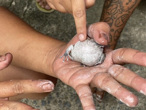 สุดท้ายมีอาสากู้ภัยฯ แถวบ้านผ่านมาพอดี จึงได้ช่วยกันงัดออกมาดูให้แน่ใจว่าคือตัวอะไรกันแน่ ซึ่งงัดแงะรถไปก็ตกใจกลัวไป ระแวงไปหมด จะเป็นงู เขียดตะปาด อึ่งอาง หรือสัตว์มีพิษอื่น ๆ ผ่านไปกว่า 30 นาที ก็รู้ว่าเป็น อึ่งอ่าง ซึ่งเพื่อนบ้านก็ได้ช่วยกันดึงจับออกมาได้สำเร็จ