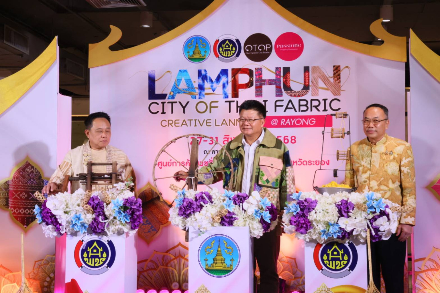 เมื่อเวลา 17.00 น. วันที่ 28 ส.ค.68 ที่ศูนย์การค้าแพชชั่นช้อปปิ้ง เดสติเนชั่นระยอง อ.เมือง จ.ระยอง ผู้สื่อข่าวรายงานว่า นายชาตรี ธินนท์ รอง ผวจ.ลำพูน เป็นประธานเปิดงาน LAMPHUN CITY OF THAI FABRIC Creative Lanna@Rayong ภายใต้โครงการส่งเสริมกระบวนการพัฒนาผ้าลำพูน ประจำปีงบประมาณ 2568 มีนายประจักษ์จิตร สายนะที พัฒนาการจังหวัดลำพูน นายชัชชัย กลีบมะลิ พัฒนาการจังหวัดระยอง หน.ส่วนราชการจังหวัดระยอง และลำพูน รวมทั้งประชาชนร่วมงานเป็นจำนวนมาก โดยงานดังกล่าว จัดขึ้นระหว่างวันที่ 27-31 ส.ค.นี้ ภายในงานมีการขนสินค้าเด่นของจังหวัดลำพูน อาทิ ผลิตภัณฑ์ผ้าลำพูนของผู้ผลิต ผู้ประกอบการผ้าของจังหวัดลำพูนกว่า 40 ร้านค้า มาเปิดให้ชาวจังหวัด ระยอง และใกล้เคียง ช้อปอย่างจุใจ และยังมีจำหน่ายอาหารและเครื่องดื่ม 10 ร้านค้ามาจำหน่ายในงานด้วย รวมทั้งมีนิทรรศการแสดงผลิตภัณฑ์ผ้าลำพูน กิจกรรมสาธิตการประดิษฐ์ของที่ระลึกจากผ้า เพื่อให้ผู้เข้าร่วมชมงานได้ฝึกปฏิบัตินำกลับไปเป็นของที่ระลึก และมีการเดินแบบผ้าลำพูนของนางแบบ การแสดงดนตรีของศิลปิน และกิจกรรมส่งเสริมการขาย เช่น กิจกรรมนาทีทอง กิจกรรมลุ้นรับโชคของรางวัลมูลค่ารวมไม่ต่ำกว่าวันละ 3,000 บาทด้วย โดยงานดังกล่าว จัดขึ้นมีวัตถุประสงค์ เพื่อเป็นการประชาสัมพันธ์ผลิตภัณฑ์ผ้าลำพูนให้เป็นที่รู้จักอย่างแพร่หลาย นำไปสู่การสร้างงานสร้างรายได้ให้แก่ผู้ผลิต ผู้ประกอบการผ้าจังหวัดลำพูน ส่งเสริมการกระจายรายได้และสร้างเศรษฐกิจชุมชนที่เข้มแข็ง