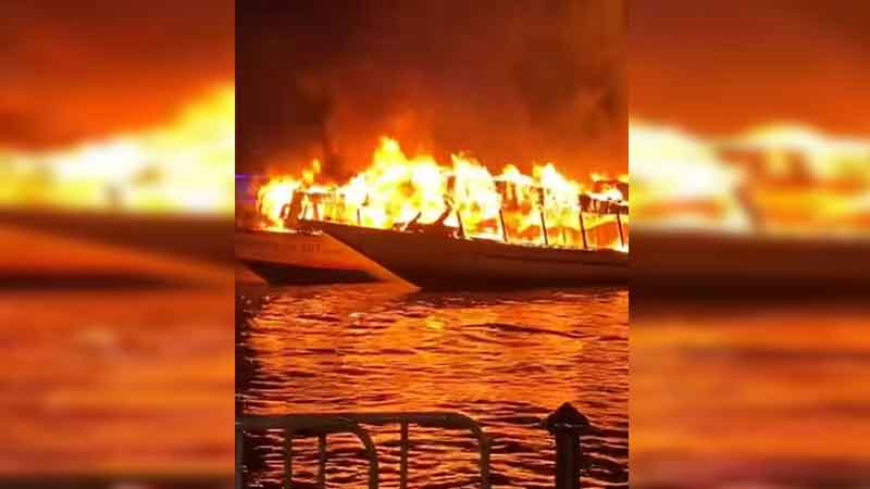 ควบคุมเพลิงได้แล้ว ไฟไหม้เรือโดยสาร 2 ลำ กลางแม่น้ำเจ้าพระยา เร่งหาสาเหตุ