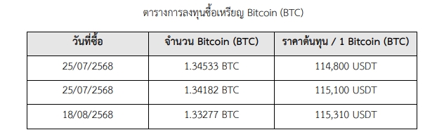 5.บริษัทฯ จะดำเนินการเปิดเผยข้อมูลการลงทุนใน Bitcoin (BTC) อย่างต่อเนื่องและโปร่งใส ทั้งในส่วนของ จำนวนการถือครอง ต้นทุนการลงทุน และมูลค่าตลาด ผ่านรายงานประจำไตรมาสและรายงานประจำปี รวมถึงรายงานต่อผู้ถือหุ้นและตลาดหลักทรัพย์โดยทันที หากมีการเปลี่ยนแปลงที่มีนัยสำคัญ