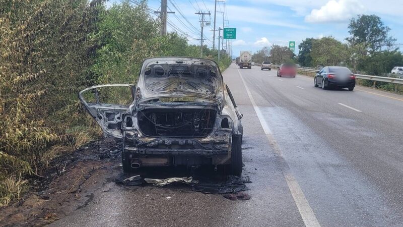 จากการตรวจสอบเบื้องต้น เป็นรถเก๋ง ยี่ห้อบีเอ็มดับเบิ้ลยู ของนักท่องเที่ยวชาวอียิปต์ ซึ่งรถคันดังกล่าวเป็นระบบใช้น้ำมันเป็นเชื้อเพลิงเครื่องยนต์ สภาพถูกเพลิงลุกไหม้วอดได้รับความเสียหายทั้งคัน มีเปลวไฟลุกท่วม และมีกลุ่มควันพวยพุ่งจำนวนมาก