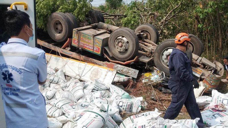 สังเวยโค้งภูเรือ! พ่วงไม่ชินทางมาเร็ว พลิกหงายท้องทับคนขับดับคาที่