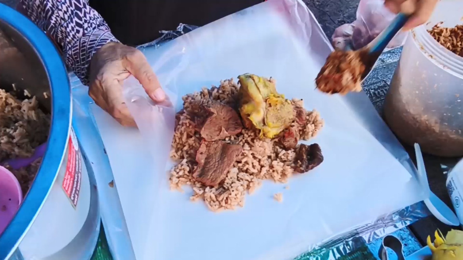 นางสาวตอฮาเราะห์ หรือยา หีมเหาะ กล่าวว่า ที่ร้านขายข้าวหมกไก่ ข้าวหมกอาหรับ ข้าวผัดไข่ดาว ข้าวคลุกกะปิ ข้าวเหนียวไก่ ข้าวมันไก่ต้ม ข้าวมันเนื้อแดง ข้าวมันเนื้อทอด ข้าวยำจะนะ 15 บาท ขนมหวาน ถุงละ 10 บาท และแกงถุง ถุงละ 20 บาท สำหรับราคาจะเริ่มต้นที่ 20 บาท 30 บาท 40 บาท อันนี้แล้วแต่ลูกค้าสั่ง ส่วนไก่ ราคาชิ้นละ 15-20 บาท ที่บ้านทำขายมาแล้ว 30 ปี โดยสืบทอดมารุ่นต่อรุ่น อันนี้รุ่นที่ 3 แล้ว เมื่อก่อนก็ขายอาหารจำพวกนี้อยู่ที่บ้านที่อำเภอจะนะ วันนี้ มากันทั้งครอบครัว 4 คน สำหรับสูตรอาหารก็ได้สูตรมาจากบรรพบุรุษ คนเฒ่าคนแก่ ที่สืบทอดกันมาจนถึงรุ่นลูกรุ่นหลาน
