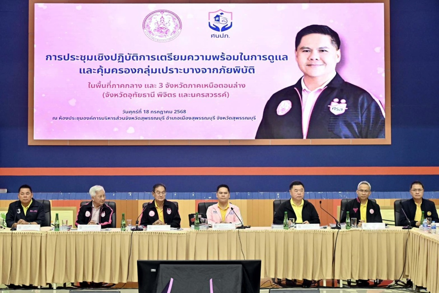 วันที่ 18 ก.ค.68 ที่ห้องประชุมองค์การบริหารส่วนจังหวัดสุพรรณบุรี นายวราวุธ ศิลปอาชา รัฐมนตรีว่าการกระทรวงการพัฒนาสังคมและความมั่นคงของมนุษย์ (รมว.พม.) เป็นประธานการประชุมเชิงปฏิบัติการเพื่อการบริหารการดูแลกลุ่มประมาณจากภัยพิบัติในพื้นที่ภาคกลาง และ 3 จังหวัดภาคเหนือตอนล่าง (จังหวัดอุทัยธานี พิจิตร นครสวรรค์) พร้อมมอบนโยบายและข้อเสนอแนะในการบริหารดูแลกลุ่มเปราะบางจากภัยพิบัติ เนื่องจากปัญหาการเปลี่ยนแปลงสภาพภูมิอากาศ โดยมีนายธเนศพล ธนบุณยวัฒน์ ผู้ช่วยรัฐมนตรีประจำกระทรวงการพัฒนาสังคมและความมั่น นายอนุกูล ปีดแก้ว ปลัดกระทรวงการพัฒนาสังคมและความมั่นคงของมนุษย์ คณะผู้บริหารกระทรวง พม. และเจ้าหน้าที่หน่วยงานที่เกี่ยวข้อง เข้าร่วม รวมทั้งมี สส. พรรคชาติไทยพัฒนา อาทิ นายประภัตร โพธสุธน นายณัฐวุฒิ ประเสริฐสุวรรณ นายสรชัด สุจิตต์ และนายพิริยะ ฉันทดิลก ผู้ว่าราชการจังหวัดสุพรรณบุรี นายอุดม โปร่งฟ้า นายกองค์การบริหารส่วนจังหวัดสุพรรณบุรี ดร.สุจิตรา ทรงมัจฉา เลขานุการนายก อบจ. สุพรรณบุรี เข้าร่วมให้ข้อเสนอแนะการดูแลกลุ่มเปราะบางจากภัยพิบัติ