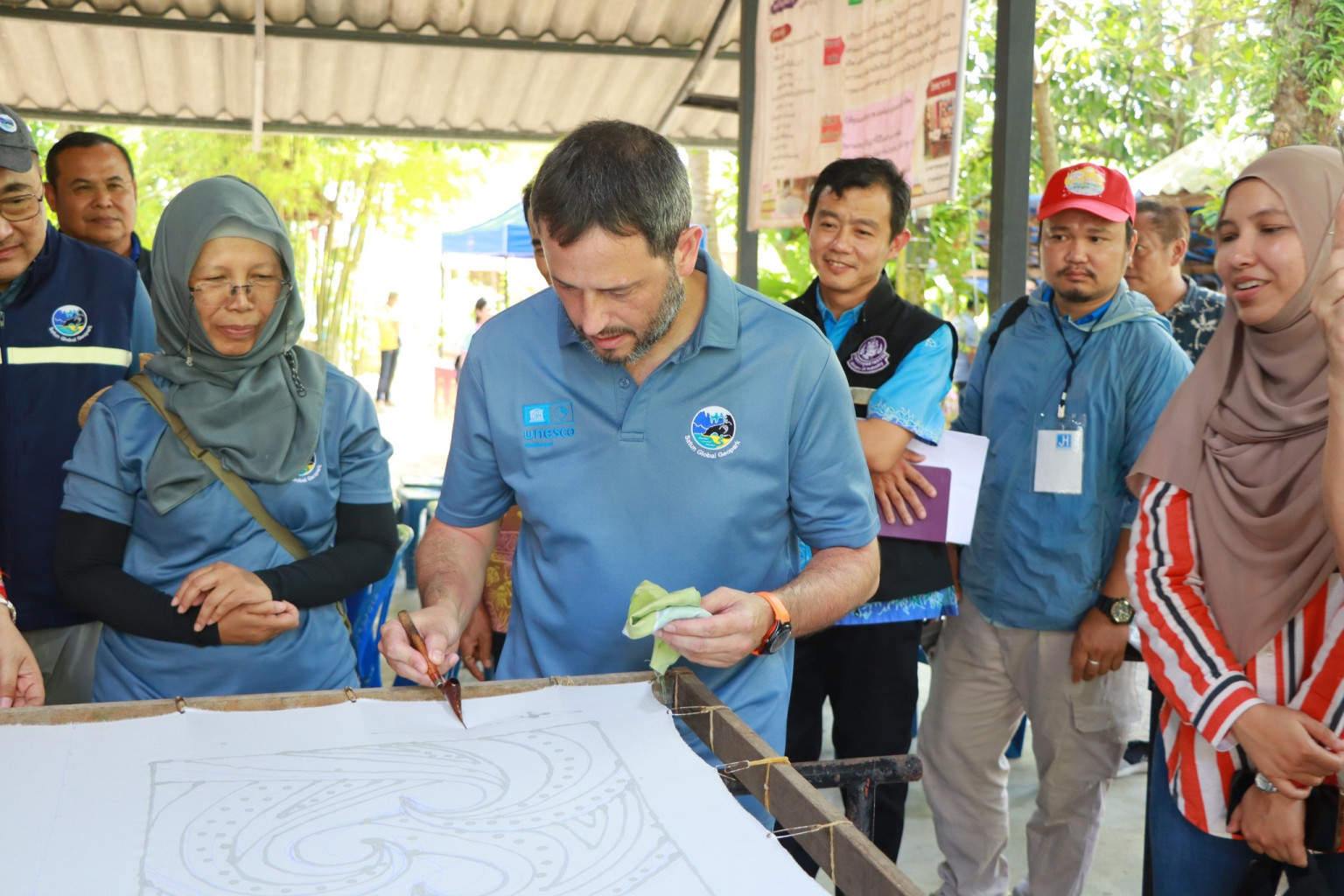 หนึ่งในจุดเน้นสำคัญที่สร้างความประทับใจแก่คณะผู้ประเมินคือ วิสาหกิจชุมชนปันหยาบาติก อำเภอละงู ซึ่งเป็นตัวอย่างของ “Geopark Product” ที่เติบโตจากร้านค้าท้องถิ่นเล็ก ๆ สู่ศูนย์เรียนรู้ระดับประเทศ ด้วยการบูรณาการนวัตกรรมจากสถาบันวิจัยวิทยาศาสตร์และเทคโนโลยีแห่งประเทศไทย (วว.) และการสนับสนุนจากกระทรวง อว. วิสาหกิจแห่งนี้ได้ผลิตผ้าบาติกเชิงสร้างสรรค์ที่เชื่อมโยงกับเรื่องเล่าทางธรณีวิทยา นำลวดลายของแหล่งหิน ฟอสซิล และอัตลักษณ์ท้องถิ่นมาออกแบบเป็นลายผ้า ทำให้ผลิตภัณฑ์ไม่เพียงมีคุณค่าด้านเศรษฐกิจ แต่ยังกลายเป็นเครื่องมือเล่าเรื่องราวทางภูมิศาสตร์อย่างร่วมสมัย