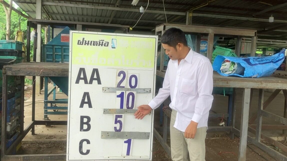 สำหรับราคาลำไยแบบตะกร้ามีเกรด AA รวมกับเกรด A อยู่ที่ กก.ละ 22 บาท ส่วนลำไยแบบรูดร่วงราคาเกรด AA กก.ละ 20 บาท A 10 บาท B 5 บาท ส่วนเกรด C กก.ละ 1 บาท