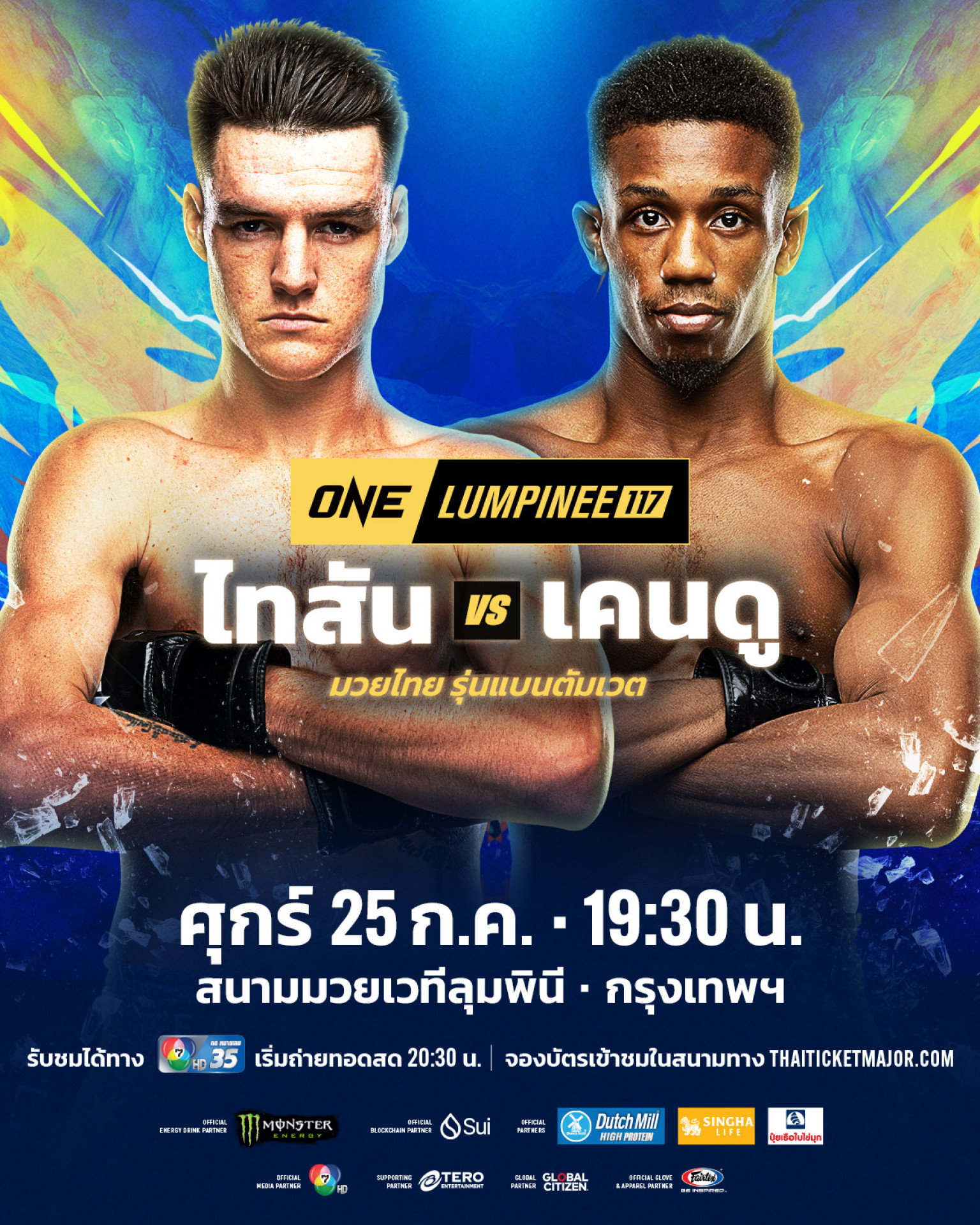 เปิดโปรแกรมคู่มวยเดือดวัดฝีมือกันในคู่เอกภาคอินเตอร์ของศึก ONE ลุมพินี 117 ซึ่งเตรียมส่งต่อความมันไปยัง 195 ประเทศทั่วโลก ในวันศุกร์ที่ 25 ก.ค.นี้ ที่สนามมวยเวทีลุมพินี (รามอินทรา) เริ่มคู่แรก 19.30 น. โดยประกบให้ “ไทสัน แฮร์ริสัน” มวยบู๊สนุก วัย 24 ปี จากออสเตรเลีย เจอกับ “เคนดู เออร์วิง” นักสู้หมัดคม วัย 25 ปี จากสหรัฐอเมริกา ในกติกามวยไทย รุ่นแบนตัมเวต (135-145 ป.)