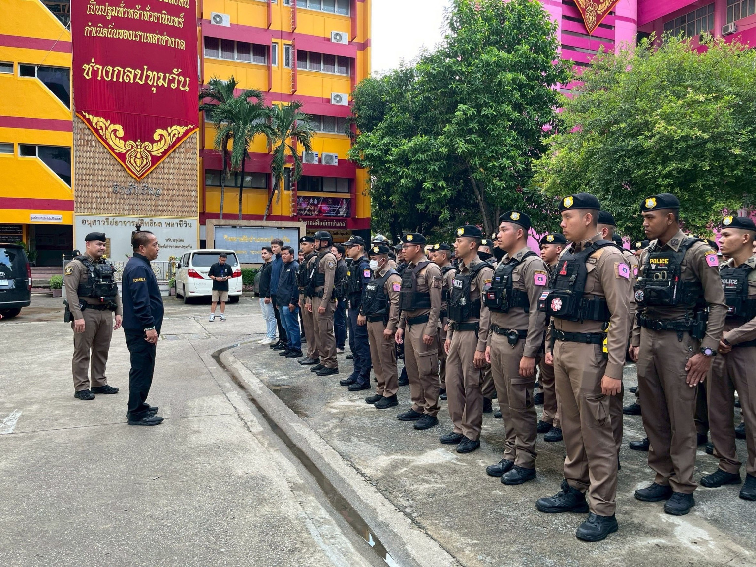 ร่วมกันอบรมปล่อยแถวรับกำลัง ฝ่าย ป. , สส. สน.ปทุมวัน และ บก.อคฝ. จำนวน 1 กองร้อย (170 นาย) , บก.สปพ. (รถ น.จักรพล จำนวน 2 คัน (4นาย) บก.สส.บช.น. , สืบสวน บก.น.6 (6นาย) โดยภารกิจ การเข้าปิดล้อมตรวจสถาบันศึกษาแห่งหนึ่งย่านปทุมวัน และ มหาวิทยาลัยเทคโนโลยีราชมงคลดัง วัตถุประสงค์เพื่อตรวจหาสิ่งผิดกฎหมายและอาวุธที่อาจจะนำมาใช้ก่อเหตุในห้วงวันงาน ซึ่งจะจัดขึ้นเนื่องด้วยคล้ายสถาบันเทคโนโลยีแห่งหนึ่งย่านปทุมวัน ครบรอบก่อตั้งในวันที่ 1 ส.ค.68