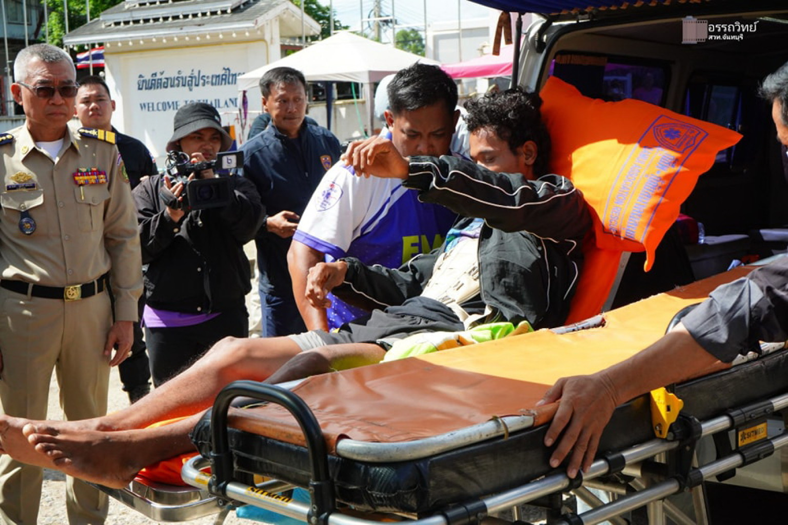 นาทีมิตรภาพและมนุษยธรรม ท่ามกลางความขัดแย้ง ไทย-กัมพูชา หน้าด่านบ้านแหลมจันทบุรี ประสานความร่วมมือ เคลื่อนย้ายผู้บาดเจ็บ ชาวกัมพูชา ตกต้นทุเรียน กลับไปรักษาตัวที่บ้านเกิด