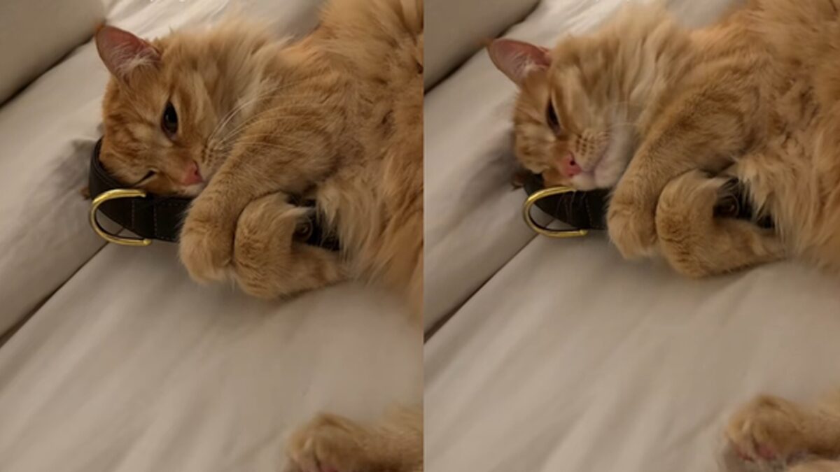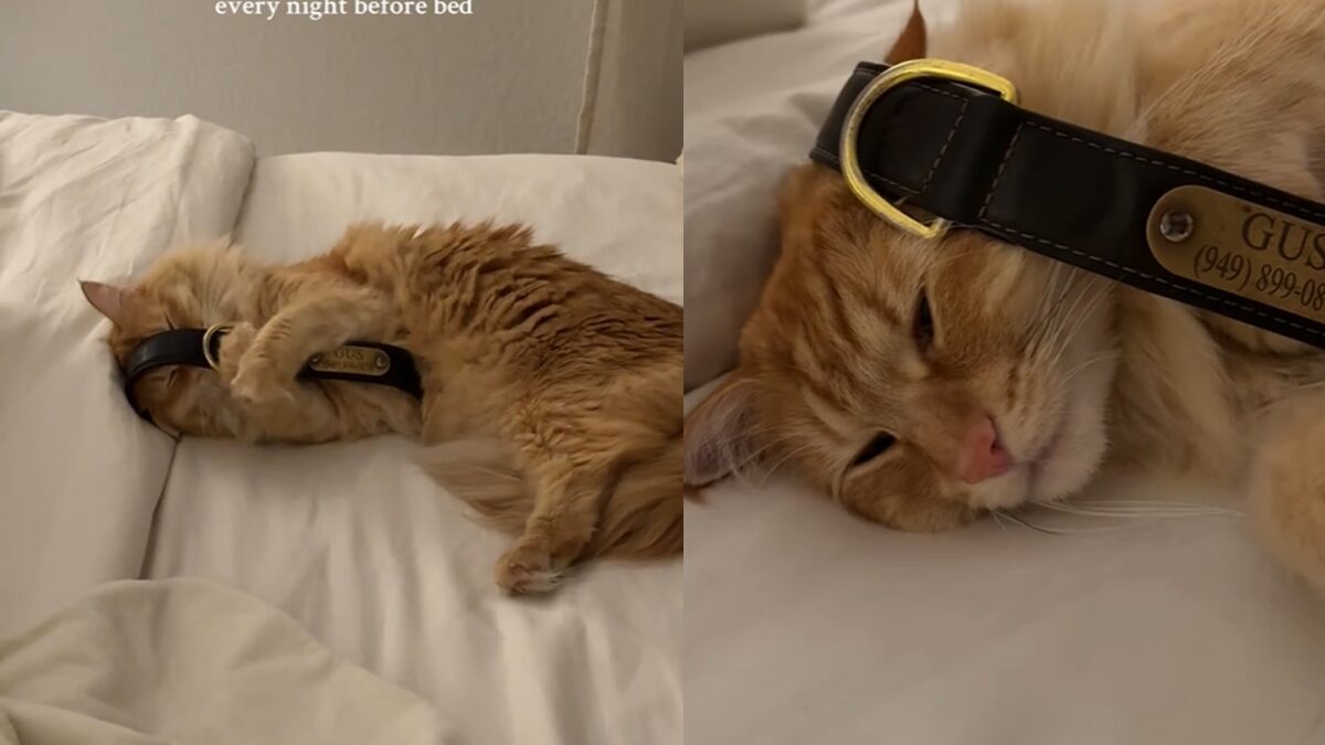 สาวแชร์คลิปเหมียวส้มนอนกอดปลอกคอสุนัขทุกคืน เผยเบื้องหลังซึ้ง เป็นของเพื่อนเก่า ยังคงคิดถึงแม้จากไปแล้ว 6 เดือน