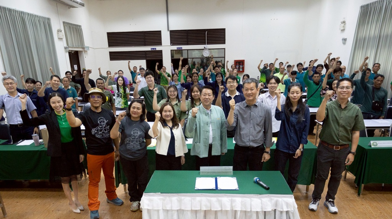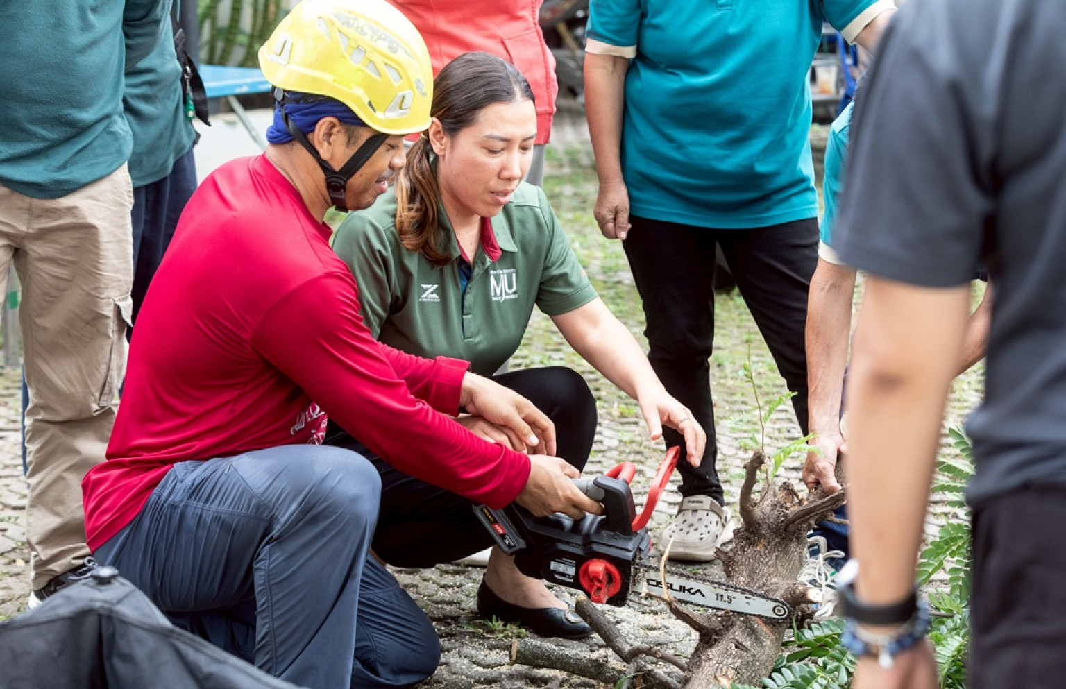 โอกาสนี้ได้รับเกียรติจาก ผู้ช่วยศาสตราจารย์บรรจง สมบูรณ์ชัย “หมอต้นไม้” ของเมืองไทย และทีม Babyteam and Babytree เป็นวิทยากร ทั้งภาคทฤษฎี และฝึกปฏิบัติ ซึ่งมีเจ้าหน้าที่จากทุกส่วนงานเข้าร่วมการฝึกอบรม เพื่อนำความรู้เป็นแนวทางในการดูแลรักษาต้นไม้ในแต่ละพื้นที่ ในแต่ละส่วนงานต่อไป