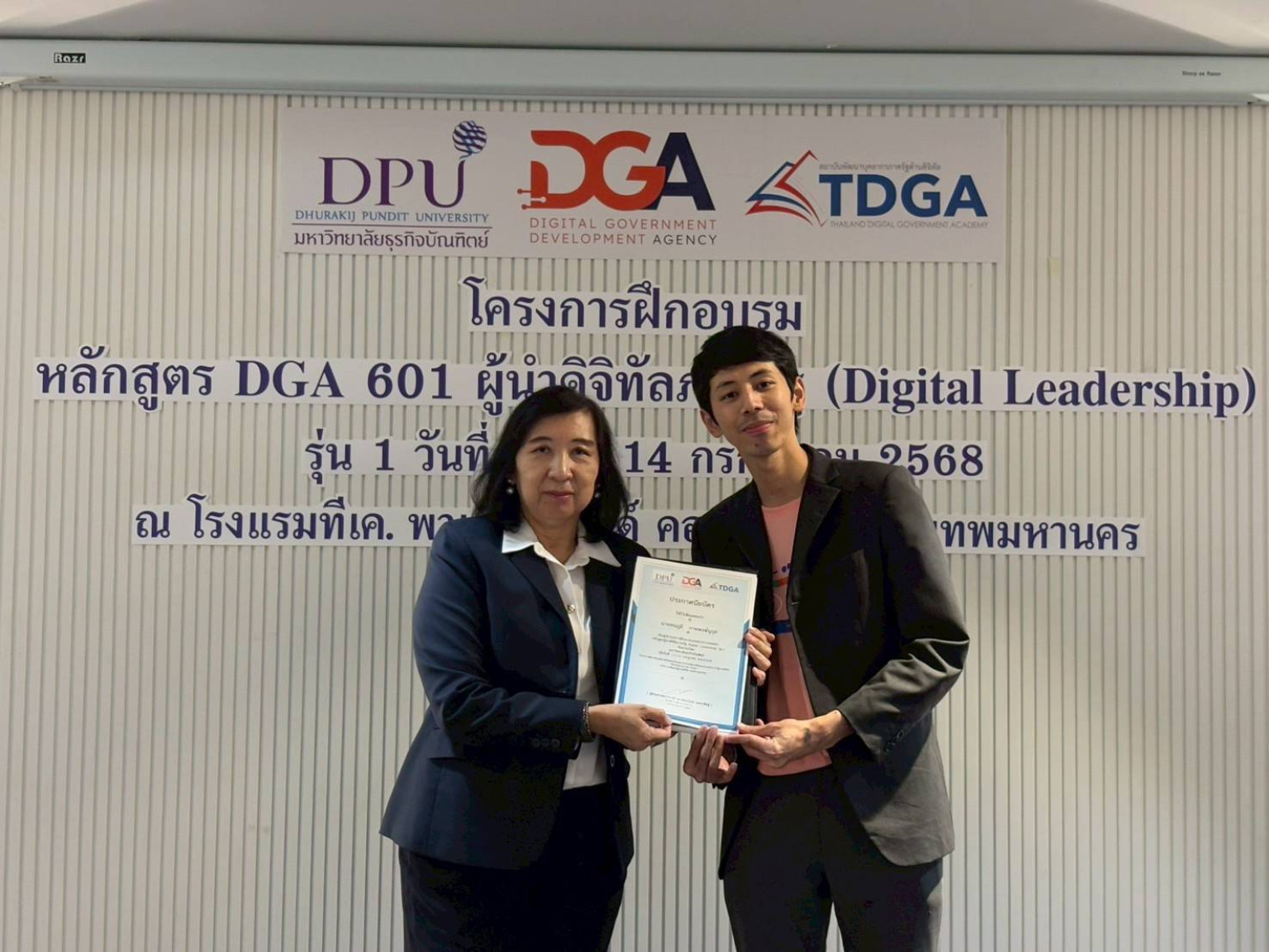 มหาวิทยาลัยธุรกิจบัณฑิตย์ (DPU) โดยคณะรัฐประศาสนศาสตร์ ได้จัดหลักสูตร Digital Leadership เพื่ออบรม ผู้นำภาครัฐดิจิทัล รุ่นที่ 1 ตามที่ได้รับมอบหมายจากสถาบันพัฒนาบุคลากรภาครัฐด้านดิจิทัล (TDGA) ภายใต้สำนักงานพัฒนารัฐบาลดิจิทัล (องค์การมหาชน) หรือ DGA โดยมี รศ.ดร.วลัยพร รัตนเศรษฐ คณบดีคณะรัฐประศาสนศาสตร์ เป็นหัวหน้าโครงการอบรม การอบรมนี้จัดขึ้นเป็นเวลา 18 ชั่วโมง ตลอด 3 วัน ในวันที่ 1, 7, และ 14 กรกฎาคม 2568 ที่ผ่านมา ณ โรงแรมทีเค. พาเลซ แอนด์ คอนเวนชั่น แบงคอก ถนนแจ้งวัฒนะ กรุงเทพฯ
