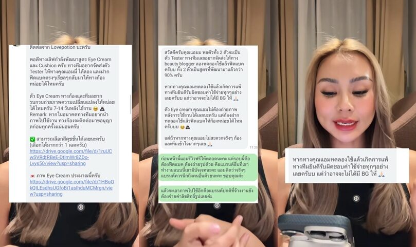 “ตรงที่ว่าเป็นตัวเทสเตอร์ 2 อย่าง แล้วเขาขอฟีดแบ็ก ให้ถ่ายรูป 7-14 วัน แอมรู้สึกมันเกินขอบเขตไปนิดหนึ่ง ปกติแบรนด์ใหญ่ๆหรือแบรนด์อื่นที่เคยร่วมงานกัน เขาจะส่งของให้ เราจะลงสิ่งที่เราชอบ อะไรที่เรารู้สึกไม่ได้อยากบอกต่อ ก็จะไม่ลงเป็นปกติ”