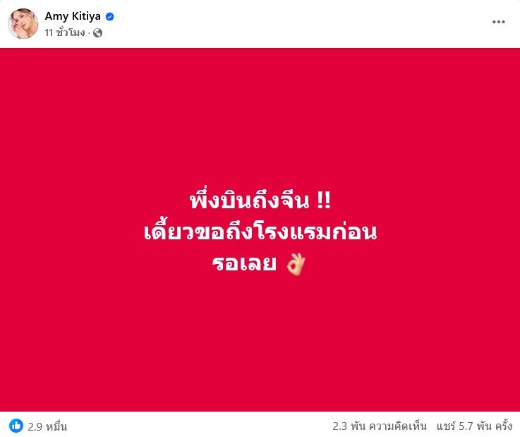 โดย แอมมี่ เพิ่งบินถึงจีนพร้อมชี้แจงด้วยว่า “สิ่งแรกทำไมต้องโพสต์ ทั้งที่สามารถปฏิเสธได้ ปกติแบรนด์จะส่งของมา แอมโพสต์ให้ทั้งวิดีโอ ทั้งรูปหลายครั้งมากๆ เราใจดีกับเขามาตลอด เพราะอยากสนับสนุนเค้า แต่มารอบนี้เรารู้สึกมันแอบเกินขอบเขตไปหน่อย”
