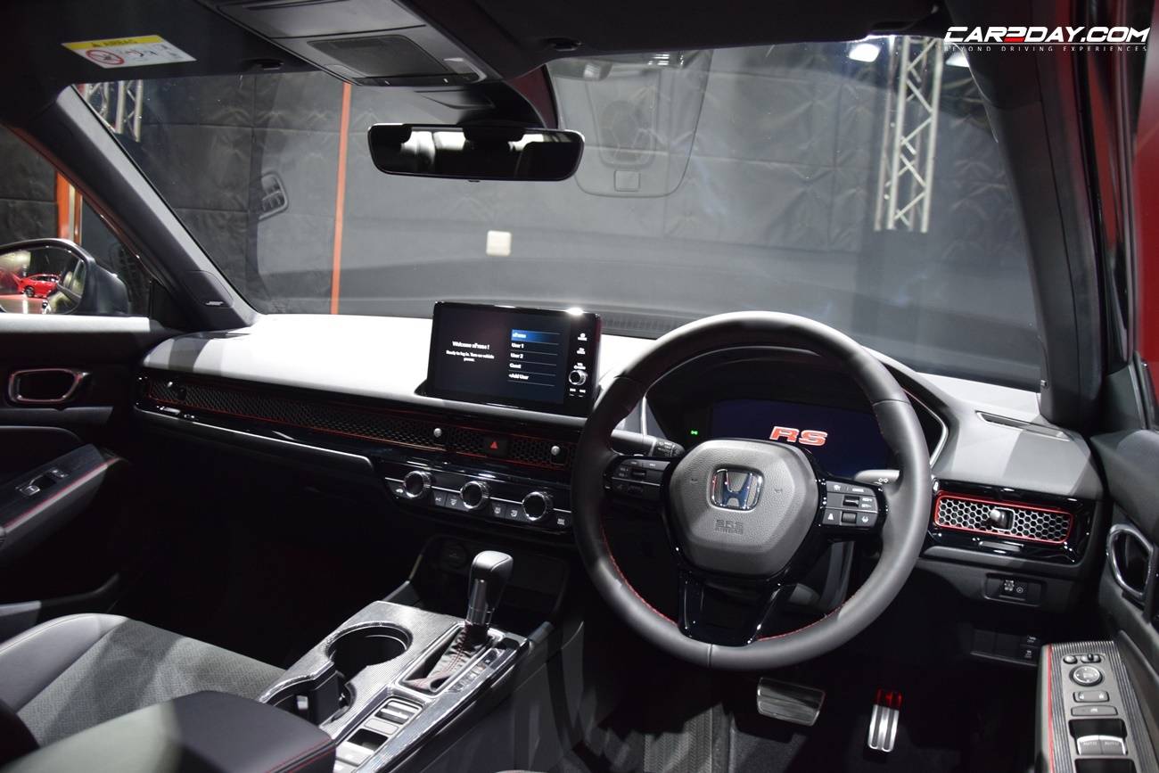 ยกระดับความสปอร์ตภายในห้องโดยสาร รุ่น e:HEV RS เบาะที่นั่งลายใหม่ Prime smooth ด้วยวัสดุเบาะหนังกลับและหนังสังเคราะห์สีดำตกแต่งด้วยด้ายสีแดง อีกทั้งตกแต่งแผงคอนโซลหน้าและแผงประตูด้านข้างสีแดงสไตล์สปอร์ต ไฟส่องสว่างตกแต่งแผงประตูคู่หน้าและที่เท้า แป้นเหยียบคันเร่งและเบรกแบบสปอร์ต มาตรวัดพร้อมหน้าจอแสดงข้อมูลการขับขี่แบบ TFT ขนาด 10.2 นิ้ว ช่องปรับอากาศสำหรับผู้โดยสารตอนหลัง ระบบปรับอากาศอัตโนมัติแบบปรับอุณหภูมิแยกอิสระซ้าย-ขวา