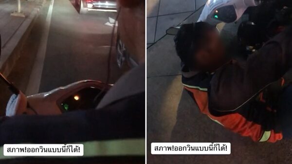 อีกทั้งวินจักรยานยนต์ดังกล่าวยังขับเซไปเซมา เกือบชนกับรถหลายคัน จากนั้นตนเริ่มเห็นท่าไม่ดี เลยยกโทรศัพท์มือถือขึ้นมาถ่ายคลิปวิดีโอเอาไว้ ก่อนที่ตนจะถามไปว่า "ลุงเมามั้ยเนี่ย" แต่วินจักรยานยนต์ก็ปฏิเสธ ตอบกลับมาว่า "ลุงแค่มึน ๆ" และพูดจาไม่ค่อยรู้เรื่อง