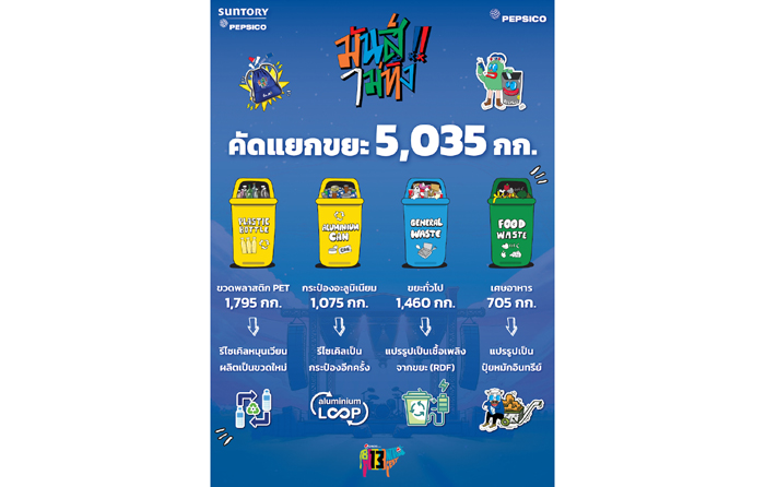 หลังจบงาน ขยะที่ถูกคัดแยกแล้ว 5,035 กิโลกรัม ถูกส่งไปรีไซเคิลหรือนำไปใช้ประโยชน์อย่างเหมาะสม