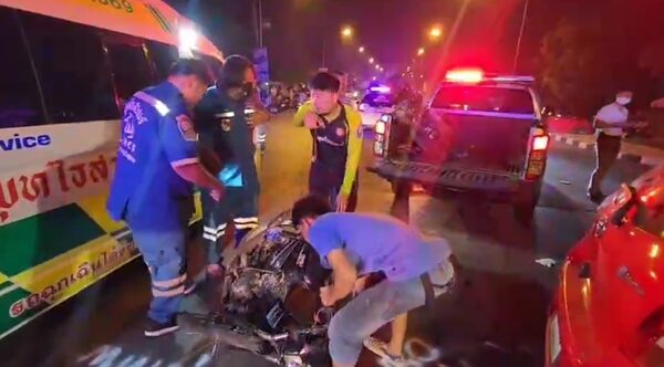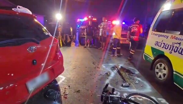 แม่สุดช็อก ลูกชายกลับจากช่วย ล้างจาน ขับจักรยานยนต์พุ่งชนเก๋งกลับรถกลางถนนตรงเส้นทึบเสียชีวิตสลด