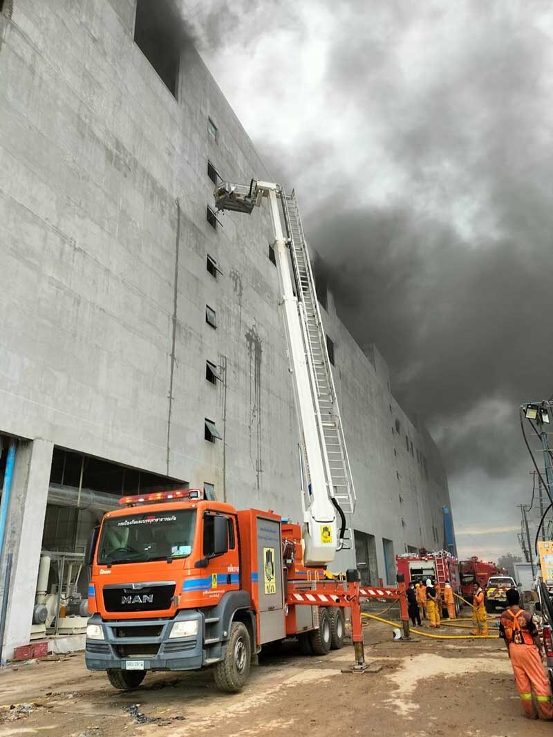 โดยเพลิงลุกไหม้ตัวอาคารโรงงานขนาดกว้าง 101 เมตร ยาว 200 เมตร บริเวณชั้น 4 ในพื้นที่ 161 ไร่ เจ้าหน้าที่ได้นำผู้ติดค้างในอาคาร จำนวน 10 กว่าคน ออกจากตัวอาคารหมดแล้ว แต่ยังไม่สามารถสำรวจความเสียหายในตัวอาคารได้ เนื่องจากมีสารเคมีอยู่ในบริเวณพื้นที่เกิดเหตุ