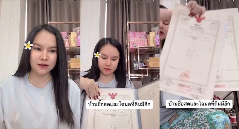 แถมยังโชว์โฉนดที่ดินต่างๆ อีกอื้อ “บ้านที่กรุงเทพฯ ซื้อสด 23.9 ล้าน นั่งขายของออนไลน์มา 7 ปี ยอดขายเครื่องรางหลายร้อยล้านต่อปี ขายครีมกระปุกละร้อย ก็รวยได้”