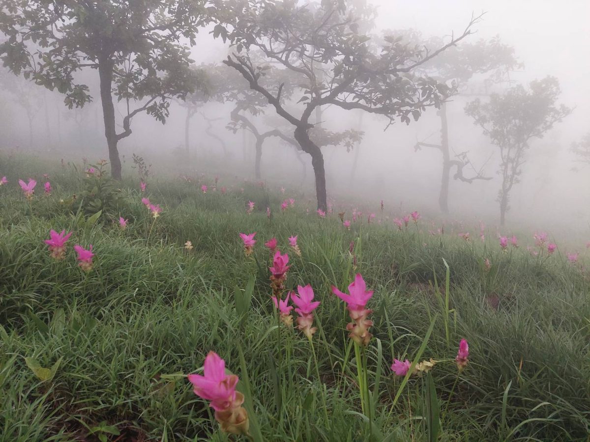 ด้วยบรรยากาศที่สุดหาชมยาก ได้สัมผัสกับทะเลหมอก มองเห็นในระยะทางสุดลูกหูลูกตา เดินชมทุ่งดอกกระเจียวสีชมพูอมม่วง ภายในทุ่งหญ้าป่าเพ็ก ซึ่งปีนี้ทุ่งดอกกระเจียวเต็มพื้นที่พื้นที่ป่าไม้ ตามซอกหิน มากกว่า 80-90 % แล้ว ที่นักท่องเที่ยวต่างชื่นชมว่าใครได้มาท่องเที่ยวได้สัมผัสทะเลหมอกชมทุ่งดอกกระเจียวบานเป็นดั่งแดนสวรรค์ที่ธรรมชาติสรรค์สร้างขึ้นมาเองที่มีพื้นที่สวนหินมีอายุเก่าแก่มากกว่า 1,800 ล้านปีที่ผ่านมา จนชาวต่างชาติยกให้เป็นสุดยอด“Tulip Thailand”