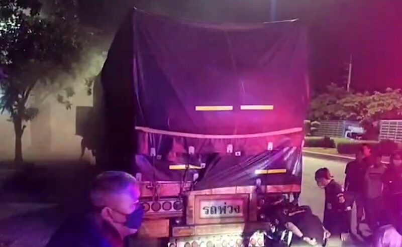 สลด หนุ่มขับจักรยานยนต์ พุ่งเสยท้ายรถบรรทุกพ่วง จอดริมทาง ใกล้แยกอ้อมน้อย จ.สมุทรสาคร ไฟลุกพรึ่บคลอกเสียชีวิตคาที่ ตร.เร่งเช็กวงจรปิด