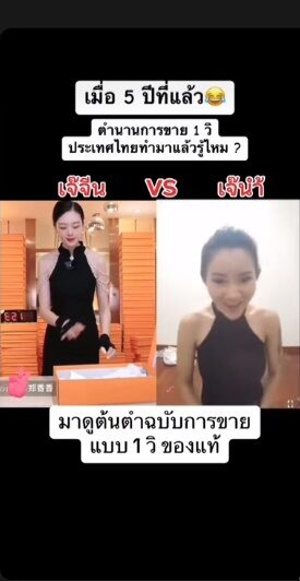 พร้อมนำคลิปมาแชร์ในเฟซบุ๊ก ระบุอีกด้วยว่า "ผู้มาก่อนกาล จีนเพิ่งมาขายอ๋อ ฉันขายมาตั้งแต่ 5 ปีที่แล้วจ๊ะ