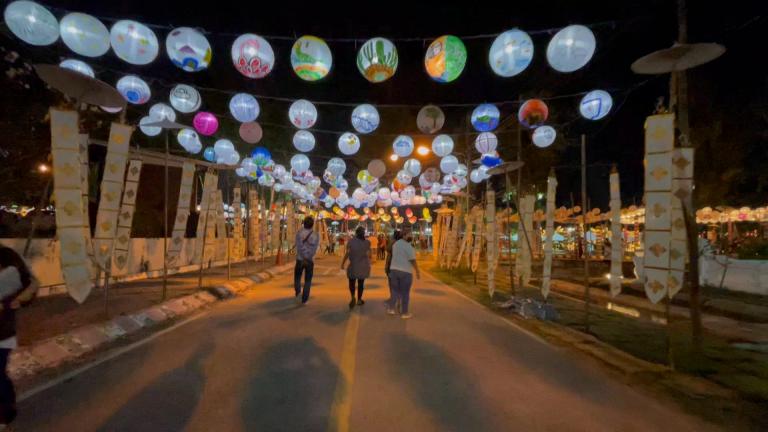 นทท.แห่ชมความสวยงามของโคมไฟนับหมื่นดวง ที่สว่างไสวทั่วบริเวณสถานที่จัดงานลอยกระทง ม.ขอนแก่น