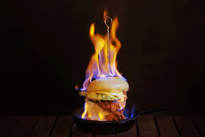 · Mom’s On Fire Burger เบอร์เกอร์ซิกเนเจอร์เฉพาะสาขา 72 Courtyard แน่นด้วยเบอร์เกอร์สะโพกไก่ไร้กระดูก 2 ชั้น ชิ้นใหญ่เต็มคำ เนื้อไก่กรอบนอก ฉ่ำใน เพิ่มกิมมิคด้วยลาวาชีสไฟลุก ส่งมอบความอร่อยที่หาไม่ได้จากที่ไหน
