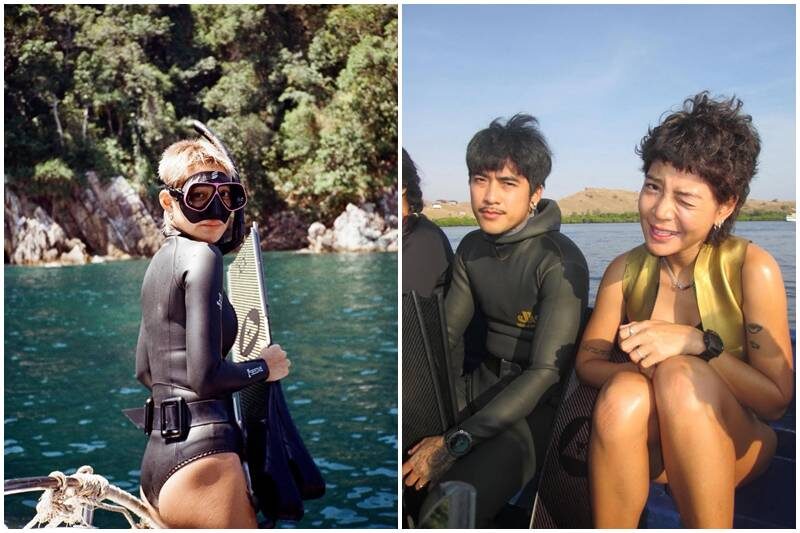 เรื่องโรงเรียนสอนดำน้ำเป็นยังไง? “ป่านสอนดำน้ำ ทุกอย่างโอเค ตอนแรกช่วงเปิดโรงเรียนแรกๆ ป่านทำกับวุฒิ 2 คน แต่ว่าตอนนี้เรามีครูทั้งหมด 5 คน เราก็เลยสามารถสลับครูได้และน้องๆ ทุกคนป่านฝึกมาเองกับมือ เราได้เห็นน้องเรา ได้รู้ว่าคนนี้ต้องสอนแบบไหน จนเรามั่นใจว่าครูทุกคนสามารถสอนนักเรียนได้อย่างปลอดภัย เราก็เลยสามารถเฟดตัวมาทำงานแสดงได้”