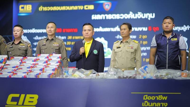 วันที่ 19 ก.พ. 67 พล.ต.ต.วิทยา ศรีประเสริฐภาพ ผบก.ปคบ. พ.ต.อ.อนุวัฒน์ รักษ์เจริญ พ.ต.อ.วีระพงษ์ คล้ายทอง ผกก.4 บก.ปคบ. พร้อมตัวแทนเจ้าหน้าที่สำนักงานกลางแห่งชาติตำรวจสากลกรุงเทพ (Interpol NCB Bangkok) เจ้าหน้าที่กรมสนับสนุนบริการสุขภาพ ร่วมแถลงผลการจับกุมเครือข่ายลักลอบจำหน่ายฟิลเลอร์เถื่อนและผลิตภัณฑ์สุขภาพผิดกฎหมายข้ามชาติ