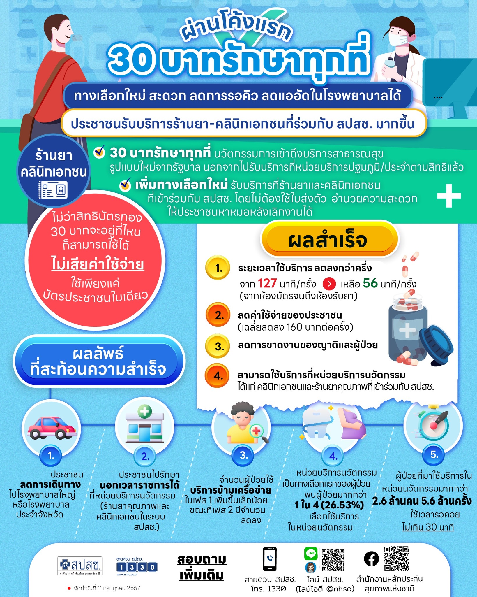 - ประชาชนไปรักษานอกเวลาราชการได้ที่หน่วยบริการนวัตทรรม (ร้านยาคุณภาพและคลินิกเอกชนในระบบ สปสช.)