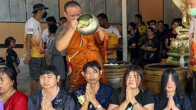ด้านพระอาจารย์เฉลิมฤทธิ์ คุเณสโก ผู้ทำพิธีได้เล่าว่าพิธีอาบน้ำมนต์และเจิมหน้าเจิมมือนั้นได้โปรดญาติโยมมากว่า10ปีแล้ว โดยทำให้ญาติโยมเพื่อความสบายใจบางคนเดินทางมาไกลเพื่อมาอาบน้ำมนต์เหมือนมาหาที่พึ่งทางใจมาถึงก็ทำให้ทุกคน โดยบางคนที่ค้าขายก็กลับมาหลายรอบบอกทำแล้วดีขึ้นชีวิตดีขึ้นแต่ส่วนใหญ่จะสอนให้อยู่ในศีลในธรรมและมีคติธรรมสอนใจให้ญาติโยมอยู่ทุกวันแล้วนำไปปฏิบัติตามไม่ให้งมงายอะไรมาก