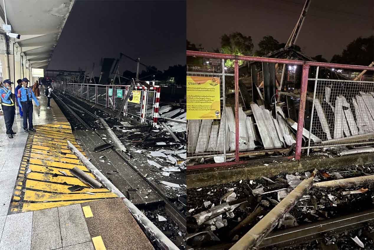 รฟท. เร่งซ่อม หลังพายุฤดูร้อนถล่ม ชานชาลาสถานีนครราชสีมา หลังคาพังยับ ยันไม่มีผู้บาดเจ็บ พร้อมตรวจสอบความปลอดภัย เกาะติดสถานการณ์ใกล้ชิด