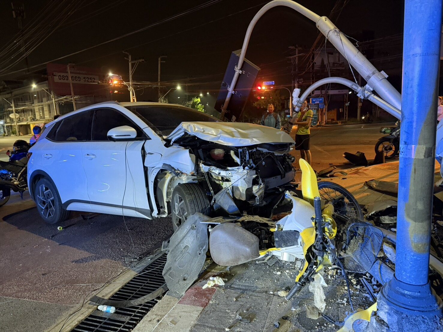 “ผมขอโทษ ผมหลับใน” หนุ่มขับรถยนต์ไฟฟ้า ไม่เบรกพุ่งเสยท้ายรถจยย.จอดติดไฟแดง สาวคนซ้อนเสียชีวิต
