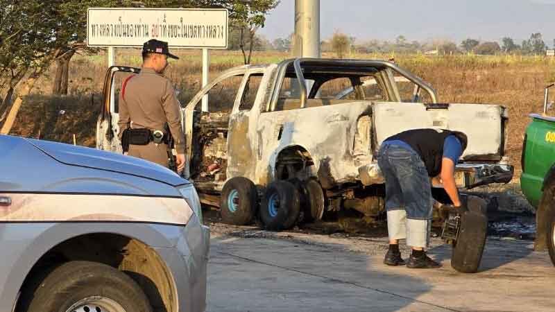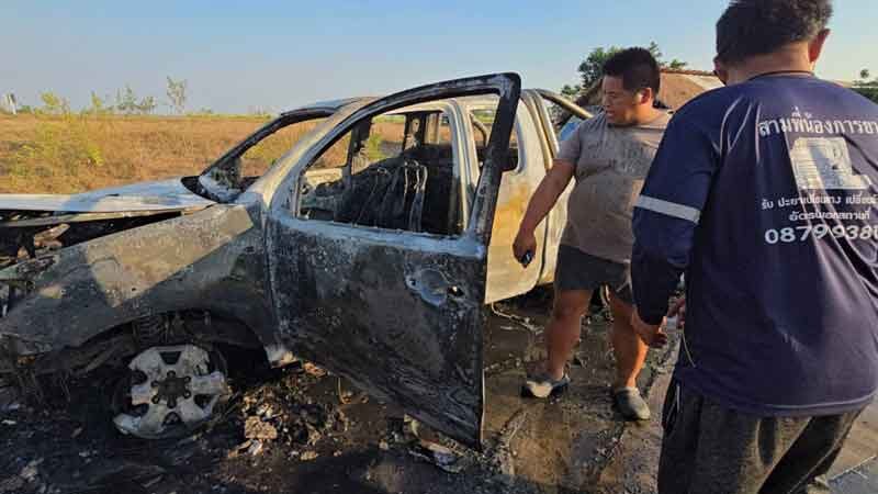 ขณะเดียวกันพบกลุ่มชาวบ้านและพลเมืองดีหลายคนต่างรีบช่วยกันหาน้ำเท่าที่จะหาได้มาช่วยกันดับเพลิงแต่ก็ไม่เป็นผลจนนาทีต่อมารถดับเพลิงจำนวน 2 คันได้เดินทางมาถึงจุดเกิดเหตุทีมดับเพลิงจึงรีบใช้น้ำแรงดันสุงฉีดดับเพลิงได้เป็นผลสำเร็จ ซึ่งหลังเพลิงสงบพบรถยนต์กระบะคันดังกล่าวถูกเพลิงไหม้รถเสียหายทั้งคันรถกลายเป็นซากเหล็กในพริบตา