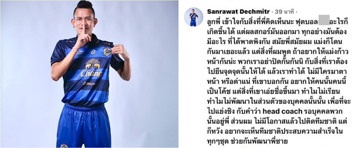 ขณะที่สรรวัชญ์ เดชมิตร อีกหนึ่งอดีตกองกลางทีมชาติไทย ที่เข้าไปคอมเมนต์ในโพสต์ของโจ้ 5 หลา ก่อนที่โพสต์จะโดนลบไป