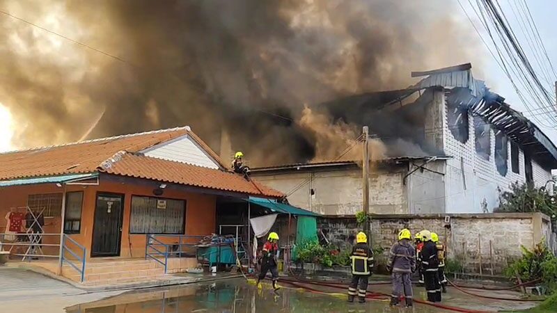 ไฟไหม้โกดังสินค้า บางขุนเทียน ควันพวยพุ่ง จนท.เร่งฉีดน้ำสกัด