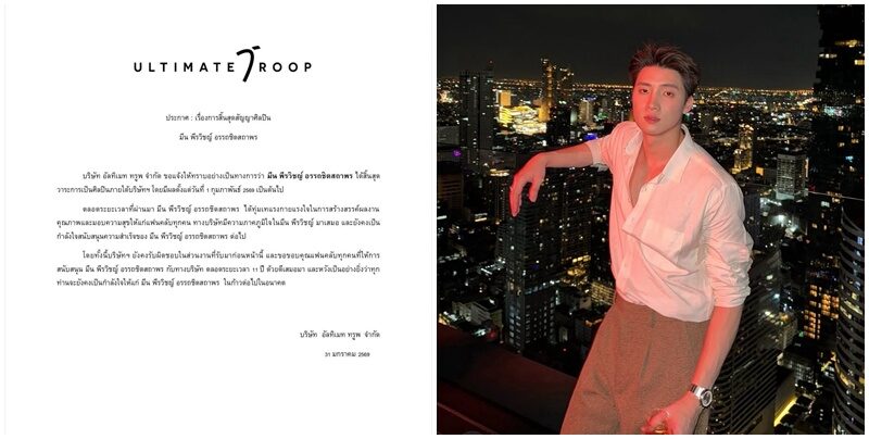 หลังประกาศสิ้นสุดสัญญา นักแสดงหนุ่มมีน พีรวิชญ์ อรรถชิตสถาพร เมื่อวันที่ 1 ก.พ. ที่ผ่านมา กับค่ายแจ้งเกิด “Ultimate Troop” เริ่มต้นเส้นทางใหม่ ออกมาดูแลตัวเองเต็มตัว หลังร่วมงานกับอดีตผู้จัดการมายาวนาน 11 ปี