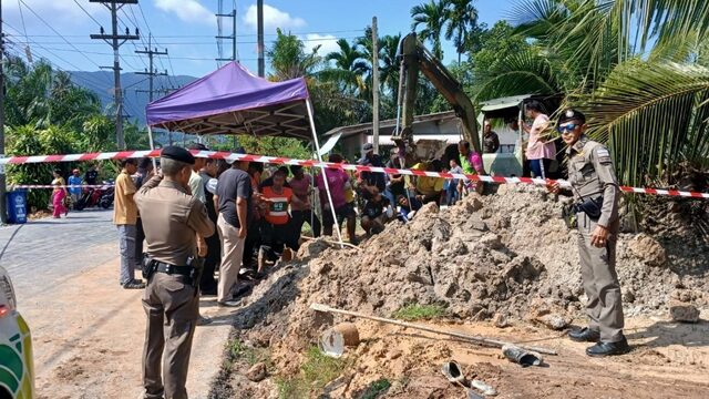วันที่ 18 มี.ค.2568 ร.ต.ท.อรรถพล จันทรัตน์ รองสารวัตร(ป.) สภ.ขนอม เปิดเผยว่า เมื่อเวลา 15.00 น.ของวันที่ 17 มี.ค.ที่ผ่านมา ได้รับแจ้งเหตุดินถล่มทับคนงานฝังท่อประปาเสียชีวิตที่ถนนหลังวัดสุวรรณ ม.3 ต.ขนอม อ.ขนอม จ.นครศรีธรรมราช จึงรุดไปตรวจสอบพร้อม พ.ต.อ.กิตติพงศ์ เทพหนู ผกก.สภ.ขนอม, พ.ต.ท.กงกฤช ทองนุ่น รอง ผกก.ป. และและทีมกู้ภัยมูลนิธิประชาร่วมใจ