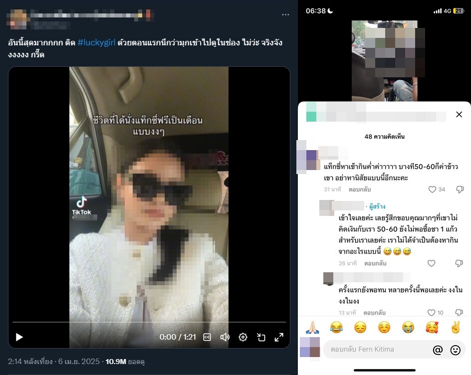 อ่านข่าวต้นฉบับได้ที่ : สาวโดนจวก โพสต์ได้ขึ้นแท็กซี่ฟรีเป็นเดือน ด้านเจ้าตัวชี้แจงแล้ว
