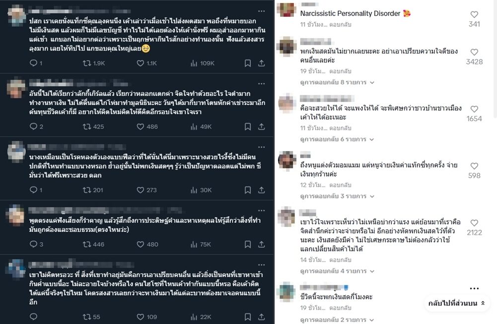 ก่อนล่าสุด เจ้าตัวจะซ่อนคลิปที่เป็นประเด็น และออกมาชี้ถึงดราม่าว่า หลายเสียงพูดตรงกันว่าทำไมไม่พยายามจะจ่ายเงิน เธอบอกว่าพยายามแล้วและเข้าใจว่าเงิน 40-50 บาท เป็นค่าอาหารสำหรับบางคน แต่แท็กซี่ที่เจอเขาบอกว่า ไม่เป็นไร ไม่ต้องจ่าย ซึ่งปกติเธอก็พกเงินสดติดตัว แต่ก็มีเหตุการณ์ที่เงินสดหมดบ้าง แล้วเขาไม่รับโอน เธอไม่ได้ตั้งใจจะเอาเปรียบใคร