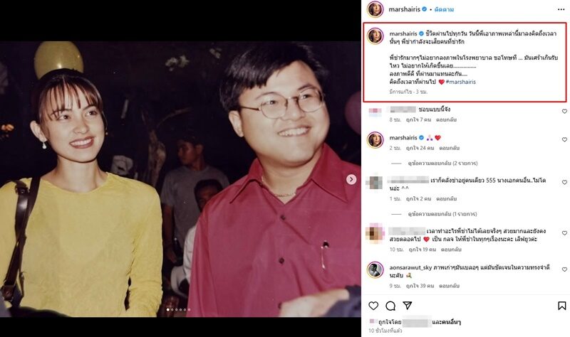“… มันเศร้าเกินรับไหว ไม่อยากให้เกิดขึ้นเลย……………. ลงภาพดีดี ที่ผ่านมาแทนละกัน…. คิดถึงเวลาที่ผ่านไป #marshairis”