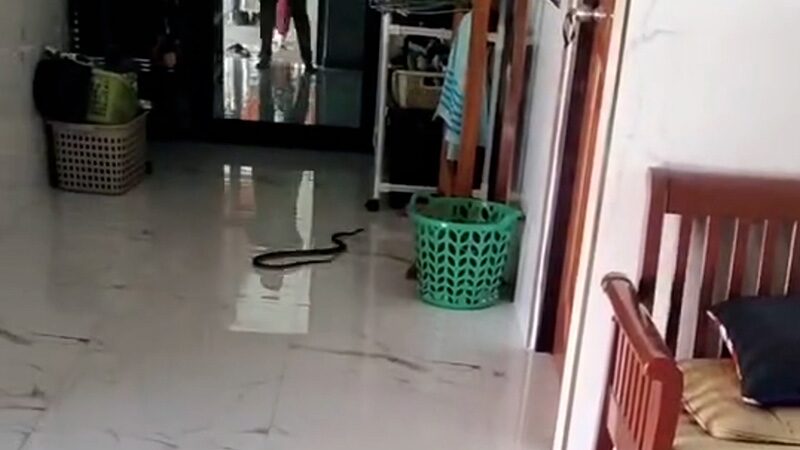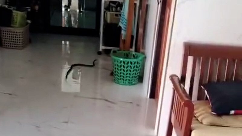 วันที่ 24 ธ.ค.2566 ผู้สื่อข่าวรายงานว่า มีผู้ใช้เฟซบุ๊กรายหนึ่งโพสต์ข้อความว่า “วันนี้มีงูเข้าบ้าน(ตั้งแต่เข้ามาอยู่บ้านใหม่เป็นครั้งแรกที่งูมาเยี่ยมบ้านค่ะ” พร้อมโพสต์คลิปวิดีโอเป็นงูตัวสีเทา-ดำ ยาวประมาณ 1 เมตร เลื้อยอยู่ในบ้าน จากนั้นก็มีคนใช้ไม้มาไล่ให้ออกไปนอกบ้านและนำไปปล่อยในป่าข้างถนน นอกจากนี้ยังได้โพสต์ภาพหน้าบ้านที่มีป้ายเลขที่บ้านด้วย