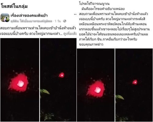 กรณีโซเชียลมีเดียโพสต์รูปดวงไฟสีแดง พร้อมระบุข้อความว่า "สอบถามเพื่อนพรานท่านใดเคยเข้าป่านั่งห้างแล้วเจอแบบนี้บ้างครับ ดวงใหญ่มากนะเท่ากระด้งสีเหมือนเหมือนพระอาทิตย์ตอนใกล้ลับฟ้านะ ตอนแรกลอยขึ้นแล้วเขาจะลอยไปเรื่อยๆไม่สูงมาก ประมาณยอดไม้ น่าจะได้ขนแขนพองเลยเเหละครับ บ้านผมภาคใต้เรียก "ชิน" ภาคอื่นเรียกว่าอะไรครับ" มีคนเข้ามาแสดงความคิดเห็นต่างๆ นานา บ้างก็ว่า "แก้วโป่ง", "ผีกระสือออกหากิน"ผีโพรง", "ผีพุ่งใต้" นั้น