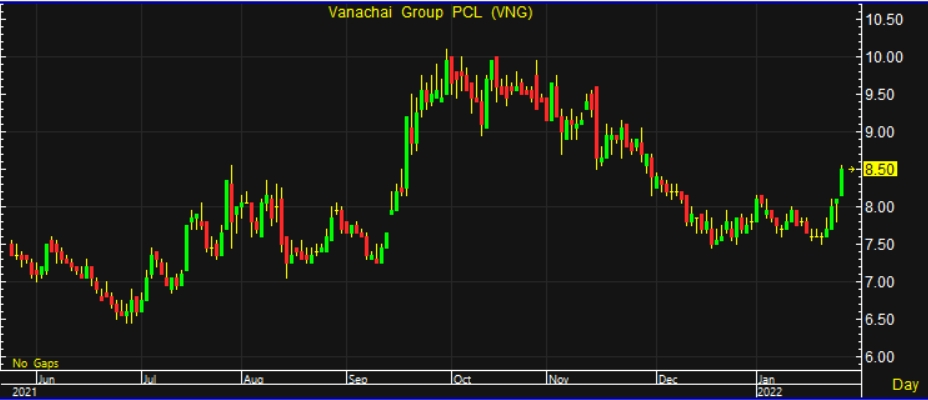 ขณะเดียวกัน VNG ปรับปรุงประสิทธิภาพการผลิตต่อเนื่อง สามารถใช้วัตถุดิบเป็นไม้ทั้งต้น ลดความเสี่ยงการขาดแคลนเศษไม้จากโรงเลื่อย รวมถึงโรงไฟฟ้าชีวมวล 9.9MW COD ไตรมาส 4/2564 และ Solar Roof Phase 4 เพิ่มจาก 9MW เป็นประมาณ 12MW ช่วงไตรมาส 2/2565 คาดช่วยลดต้นทุนพลังงาน และแผนลงทุน Logistic เพื่อลดค่าขนส่ง คาดเริ่มไตรมาส 2/2565 ทำให้คาด Gross Profit Margin กลับสู่ระดับปกติประมาณ 25-26% และคาดกำไรสุทธิอยู่ที่ 1,534 ล้านบาท เพิ่มขึ้น 26% จากประมาณการเดิม และปี 2564 คาดเงินปันผล 0.30 บาท/หุ้น