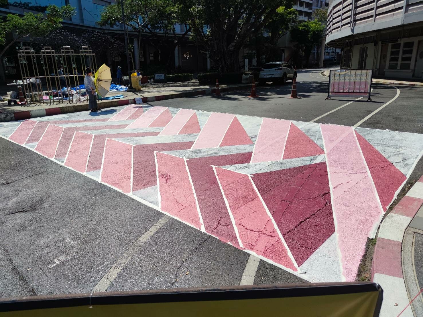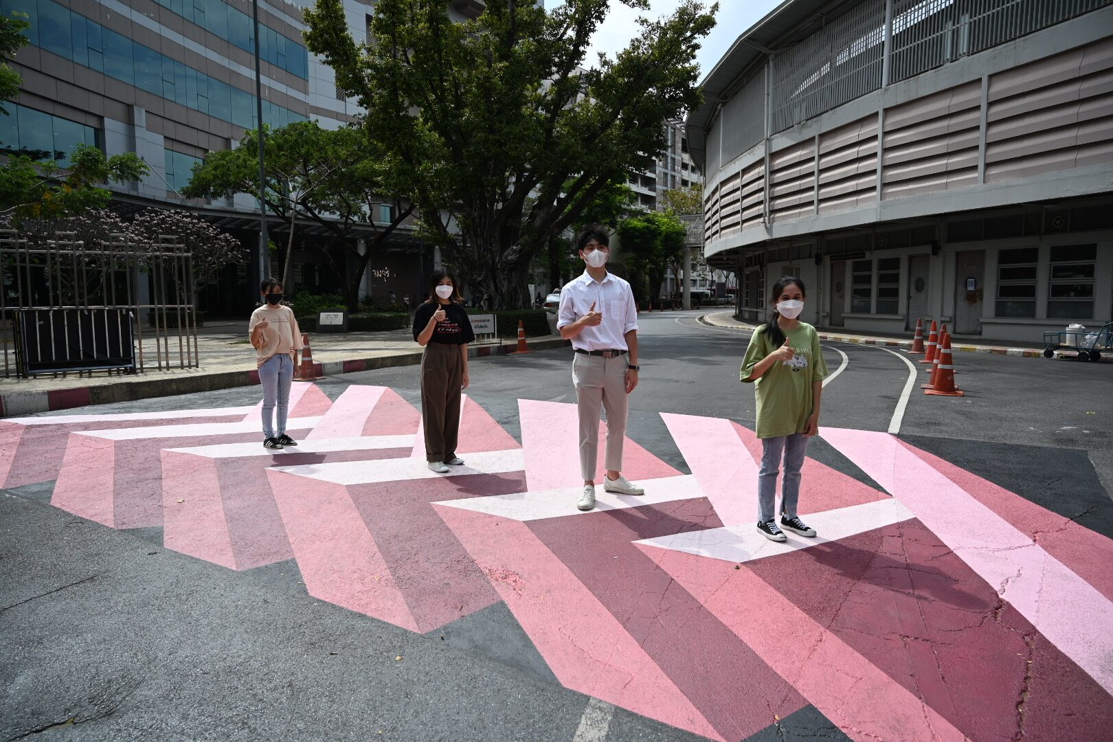 ปีที่แล้วสมาคมศิษย์เก่าสถาปัตย์จุฬาฯ ร่วมกับ PMCU สำนักงานจัดการทรัพย์สินจุฬาฯ จัดกิจกรรมประกวด PROJECT 3D CROSSWALK (ทางม้าลาย 3 มิติ) ซึ่งอาจารย์ในคณะนำผลงานที่ตนและเพื่อนๆ ช่วยกันออกแบบ "ทางม้าลาย 3 มิติ รูปทรงเรขาคณิต" ไปส่งประกวดจนชนะเลิศ บริเวณถนนทางเชื่อมหน้าอาคารจามจุรี 9 - สนามจุ๊บ แต่ปีที่แล้ว ติดปัญหาโควิด เลยทำให้วาดไม่ได้ ซึ่งจริงๆ ในมหาวิทยาลัยมี 7 จุด ที่วาดทางม้าลาย 3 มิติ
