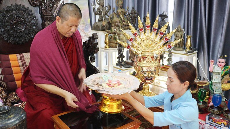 โดยวันนี้มีหญิงชาวบ้านจาก จ.เพชรบุรี ถูกลอตเตอรี่เลข 59 จำนวน 60 ใบได้เงินรางวัล 120,000 บาท นำไข่ไก่ 900 ฟอง ประทัด 10,000 นัด พร้อมเงินสดจำนวนหนึ่งมาถวาย รวมทั้งหญิงสาวจาก จ.สมุทรสาคร ถูกเลขรางวัลลอตเตอรี่หลายแสนบาทนำเงิน 90,000 ใส่พานมาถวายพระอาจารย์เอก อริยธัมโม เจ้าสำนักสงฆ์ด้วย
