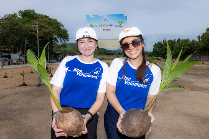 กัปตันพุฒิพงศ์ เล่าถึงโครงการด้านสิ่งแวดล้อมว่า “ตลอดระยะเวลาที่ผ่านมาเราให้ความสำคัญกับการสร้างอิโคซิสเต็มด้านความยั่งยืน เพื่อเพิ่มศักยภาพการท่องเที่ยวเชิงนิเวศของเกาะสมุย ล่าสุดบางกอกแอร์เวย์สได้เดินหน้าสานต่อโครงการ “รักษ์โลก ดูแลโลก ปลูกมะพร้าวเพื่อเกาะสมุย ปีที่ 7” : “Love Earth, Save Earth: Love Samui, Save the Coconut Tree” ซึ่งดำเนินการมาแล้วเกือบทศวรรษตั้งแต่ปี 2560 เพื่อผลักดันเกาะสมุยให้ยังคงครองตำแหน่งเดสติเนชั่นการท่องเที่ยวระดับโลก และเป็นแหล่งท่องเที่ยวยั่งยืนที่มีความอุดมสมบูรณ์ธรรมชาติ โดยมี “ต้นมะพร้าว” เป็นพันธุ์พืชสัญลักษณ์สำคัญคู่พื้นที่เกาะสมุย อีกทั้งช่วยดูดซับก๊าซคาร์บอนไดออกไซด์ได้ โดยล่าสุดบริษัทฯ ได้นำคณะผู้บริหาร พร้อมด้วยทีมอาสาสมัคร Blue Volunteers ร่วมกิจกรรมปลูกกล้ามะพร้าว ณ พื้นที่ในความดูแลของสนามบินสมุย เพื่อสร้างความตระหนักเรื่องการอนุรักษ์ทรัพยากรธรรมชาติและฟื้นฟูสิ่งแวดล้อม ภายใต้เป้าหมายการมีส่วนร่วมด้านการจัดการการเปลี่ยนแปลงสภาพภูมิอากาศเป็นสำคัญ