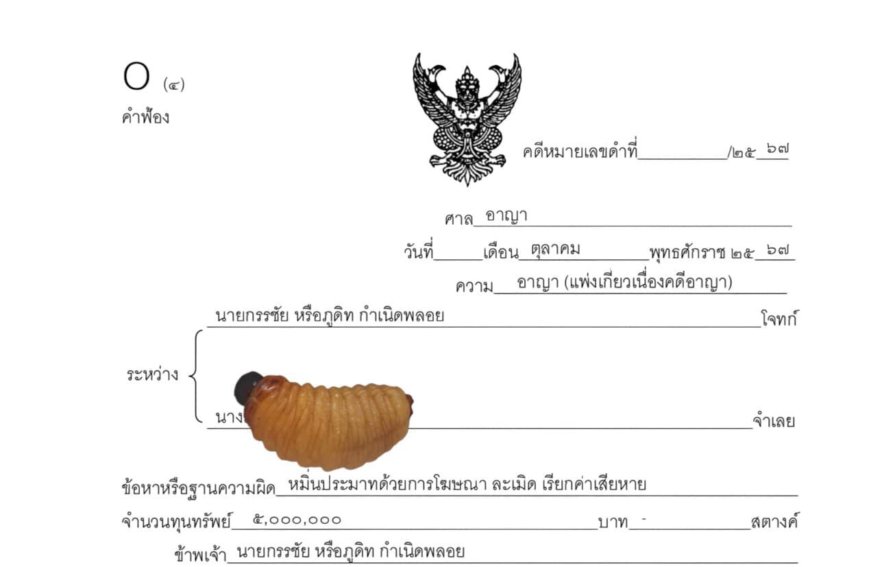 งานนี้ทำเอา หนุ่ม กรรชัย พิธีกรดัง เดือดสุดๆ เมื่อโพสต์เอกสารคำฟ้องถึงนาง ด้วงสาคู ข้อหาหมิ่นประมาทด้วยการโฆษณา ละเมิด เรียกค่าเสียหาย พร้อมเรียกค่าเสียหายจำนวน 5,000,000 บาท โดยในภาพเอกสาร หนุ่ม กรรชัย นำภาพ ด้วงสาคู มาปิดชื่อของจำเลยไว้